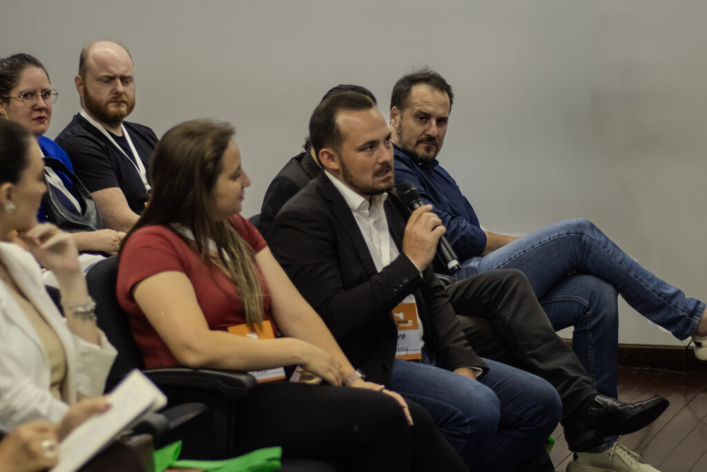 Antes da abertura oficial ao público geral, o evento contou com um momento exclusivo para participantes VIP. O grupo teve acesso antecipado ao auditório e participou de uma conversa direta com os palestrantes, em formato interativo, com espaço para perguntas e aprofundamento dos temas que seriam debatidos ao longo da noite.